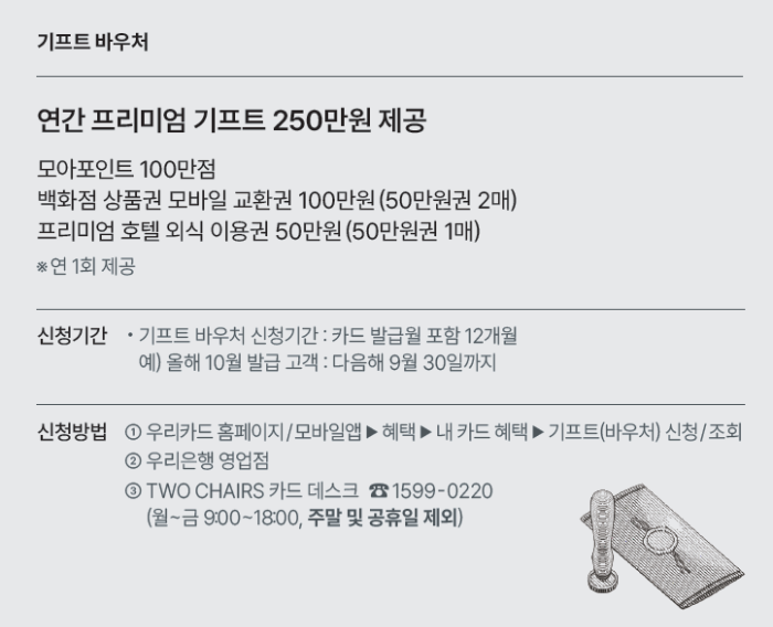 혜택 - 250만원 상당의 바우처 기프트 연 1회 제공