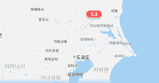 교도통신에 따르면 일본 기상청은 이날 오전 9시 8분 발생한 지진(진원 깊이 46㎞)으로 이바라키현과 사이타마현 일부 지역에서 진도 ‘5약’의 흔들림이 감지됐다고 밝혔습니다.